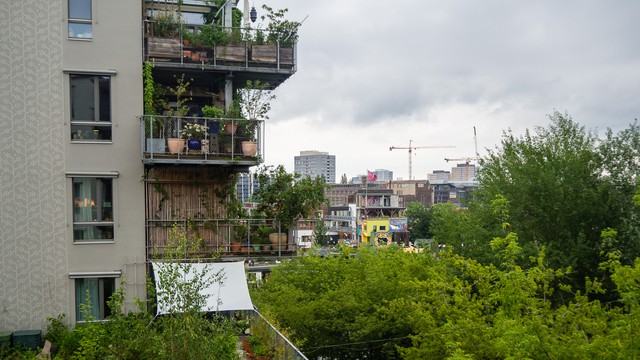 In der Berliner Innenstadt, direkt am Spreeufer wurde ein Projekt für gemeinschaftliches Wohnen und Arbeiten realisiert: das Spreefeld Berlin. Es wurden drei zusammenhängende Gebäude mit überwiegender Wohnnutzung errichtet, ergänzt wird dies durch Räume für gewerbliche, öffentliche und optionale Nutzungen. Das nachhaltige Prinzip der Selbstorganisation findet sich auch im Freiflächenkonzept wieder, wo Altes gelassen, Neues angesiedelt und Zukünftiges wachsen gelassen wird. Auch nach Abschluss der Bauarbeiten gibt es noch Entwicklungsmöglichkeiten, denn die sogenannten „Optionsräume“ können unterschiedlich genutzt werden, hier ist zum Beispiel eine Verstetigung der Zwischennutzung oder die Nutzung durch nichtkommerzielle Projekte denkbar. Das Projekt ist durch Solidarität und demokratische Mitbestimmung, gute Architektur, niedrige Kosten sowie ein ressourcensparendes Vorgehen in der Bau- und Betriebsphase geprägt. Spreefeld Berlin wurde partizipativ entwickelt, der Schwerpunkt lag dabei nicht auf der Realisierung individueller Wohnausstattungen, sondern vielmehr auf der Gestaltung und Umsetzung des Gemeinschaftlichen. Denn Ziel des Projektes ist es, nachhaltige Lebensweisen langfristig infrastrukturell zu unterstützen sowie durch die Organisation neuer Wohnformen und der Verzahnung mit der Nachbarschaft eine soziale Mischung im Projekt zu erreichen.